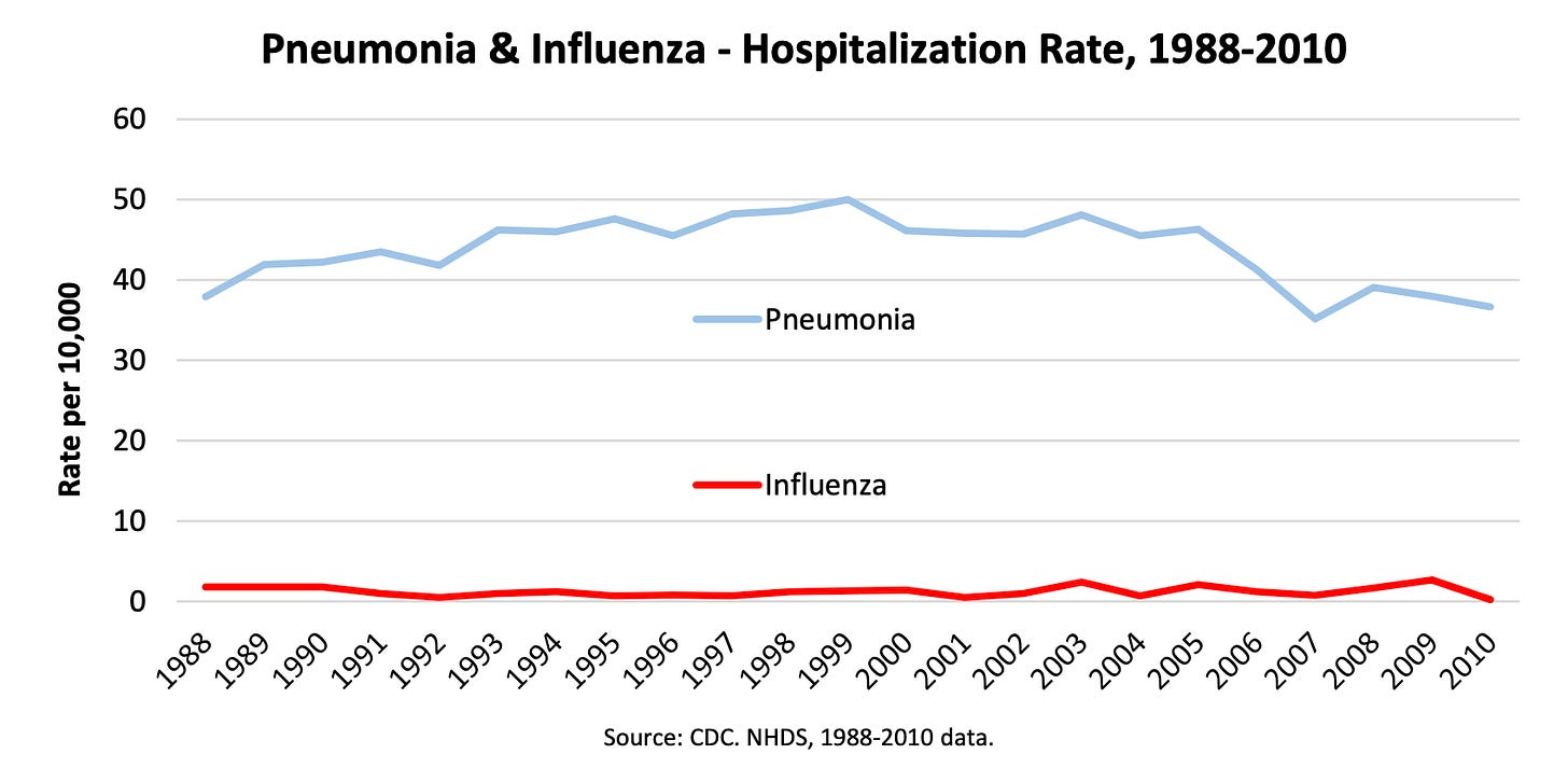 You can read their website. It clearly states that all the “flu deaths” each year are over 90% attributed to pneumonia—and no, not pneumonia caused by the flu. Some people will quibble with the cut off year, but they only produce such reports every few decades. It’s unlikely the situation suddenly flipped in the last 15. Nonetheless, it might be helpful to see their statistical slight-of-hand used to drum up fear.
